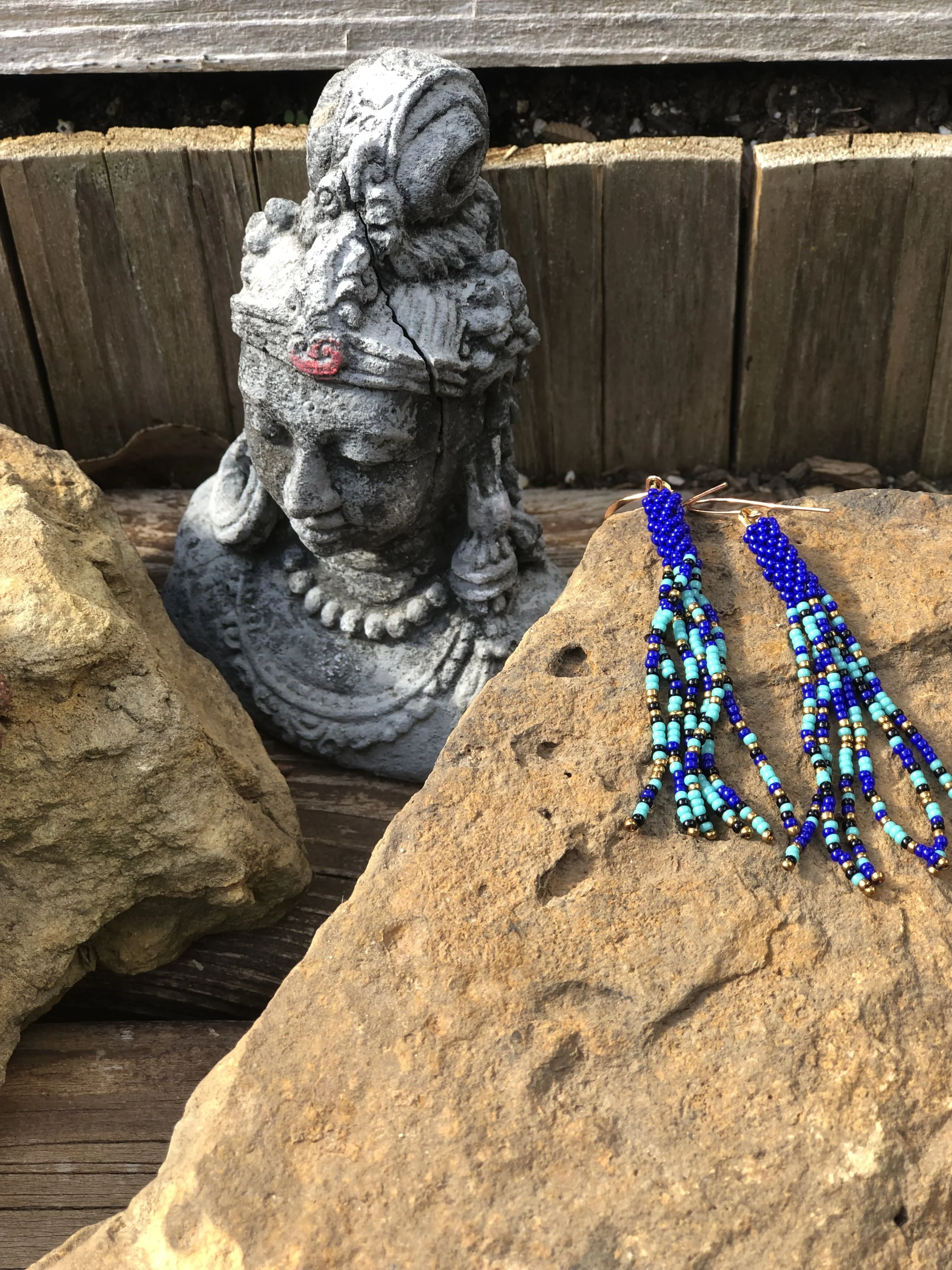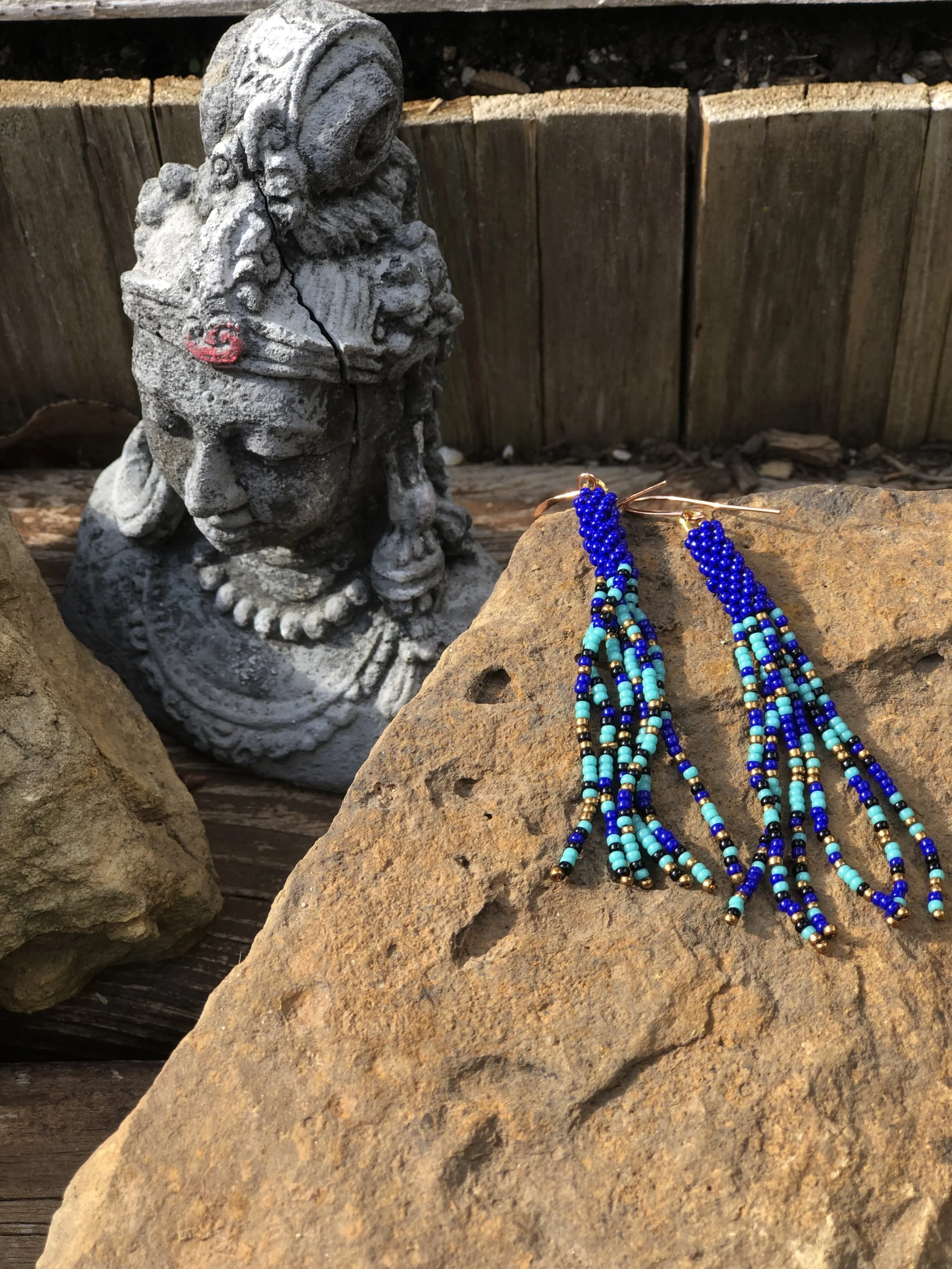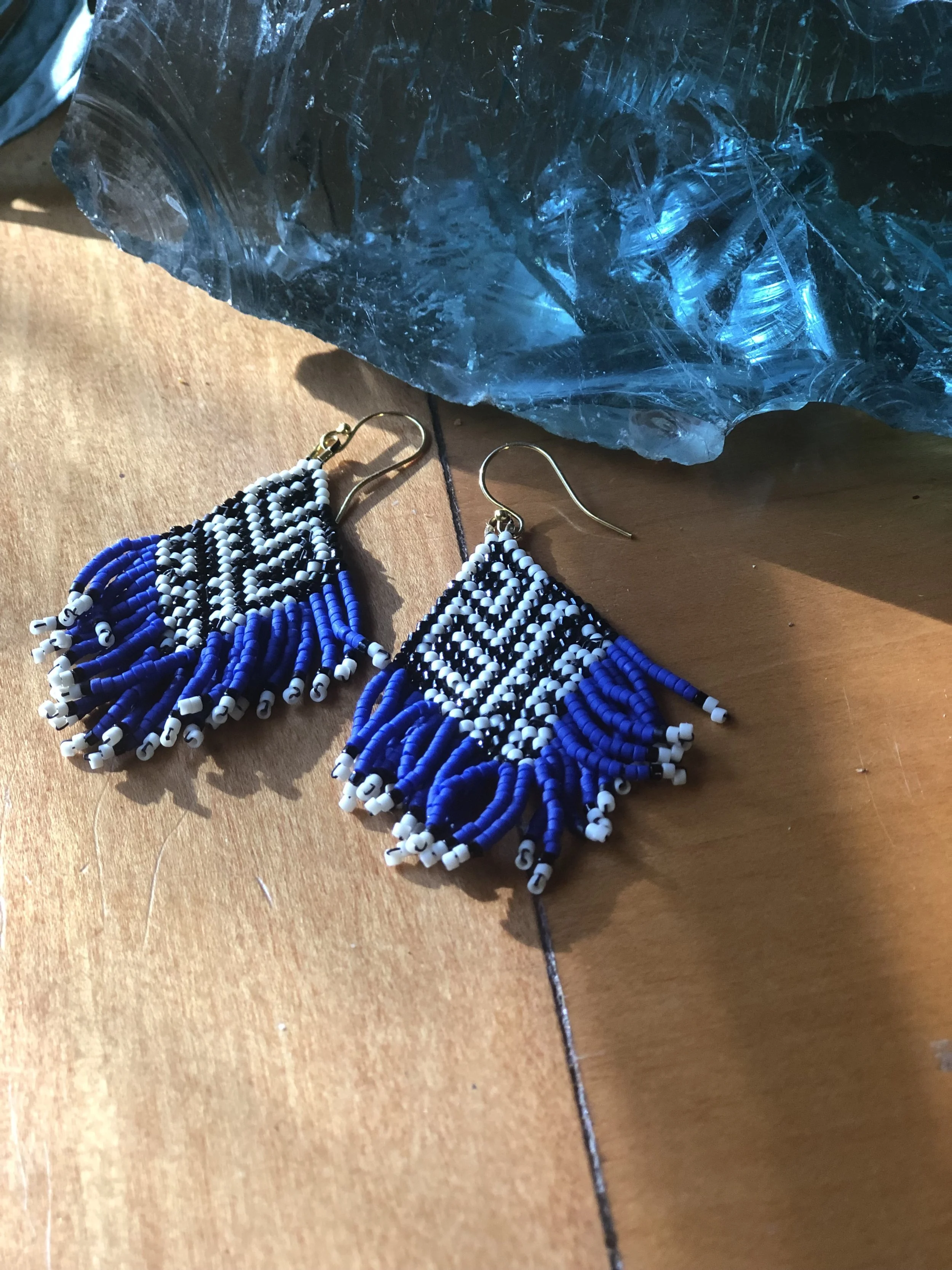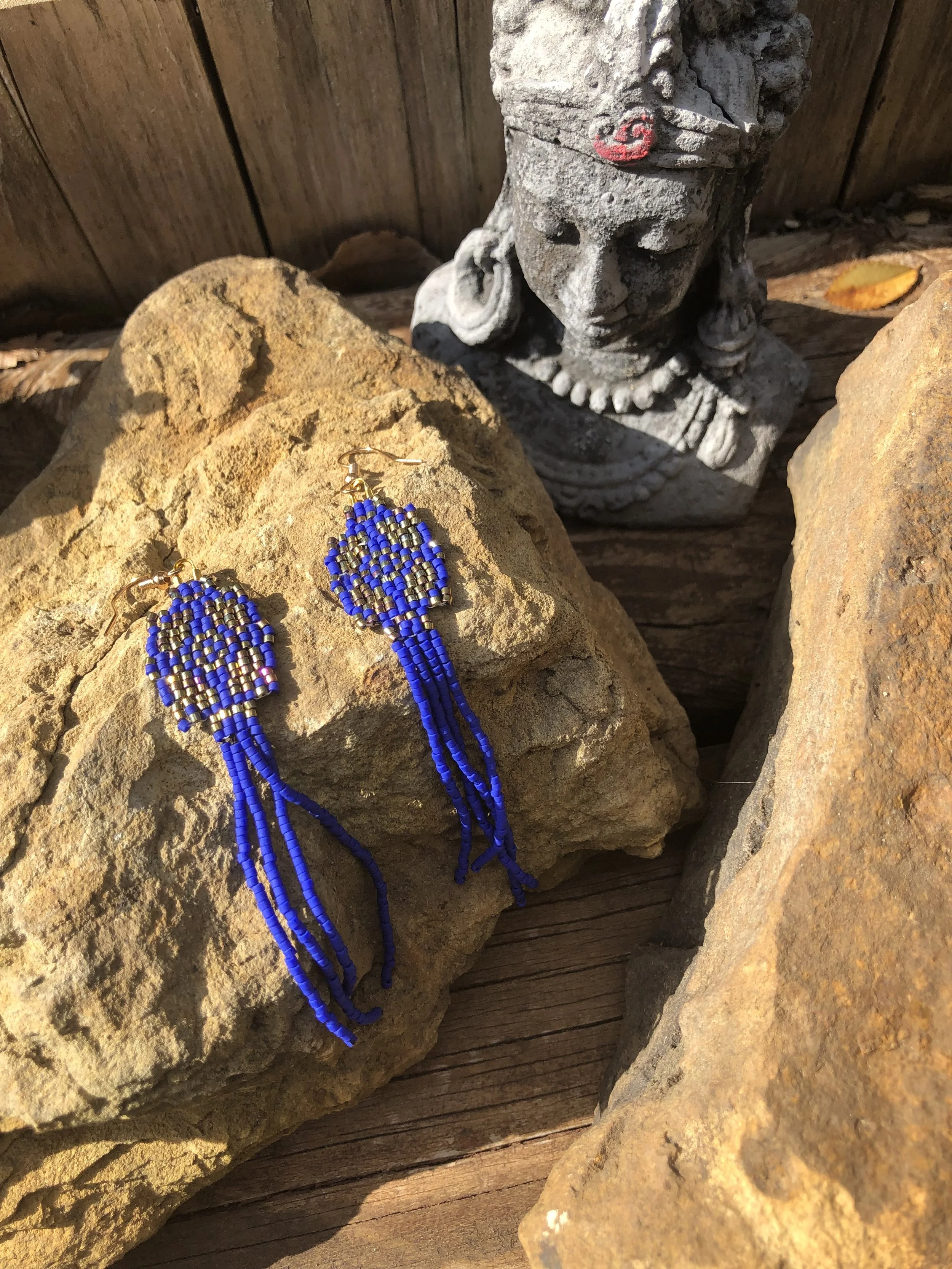 Hand Beaded Jewelry & Treasures Explore creative self expression with beadwork as joyful to wear as to make! More product categories will be added soon. Free shipping within the United States. Categories: All Earrings All | Earrings | Geo BlueEarrings $45.00 Boho Blue Earrings $40.00 Black Magic Earrings $40.00 Sold out Harvest Earrings $40.00 Spark Earrings $35.00 Blue Water Earrings $35.00 Red Tribal Earrings $40.00 Sold out Royal Structure Earrings $40.00 Snake Fringe Earrings $40.00 Harvest Dream Earrings $40.00 Sold out Tribal Fan Earrings $40.00 Sold out Gift Card from $25.00