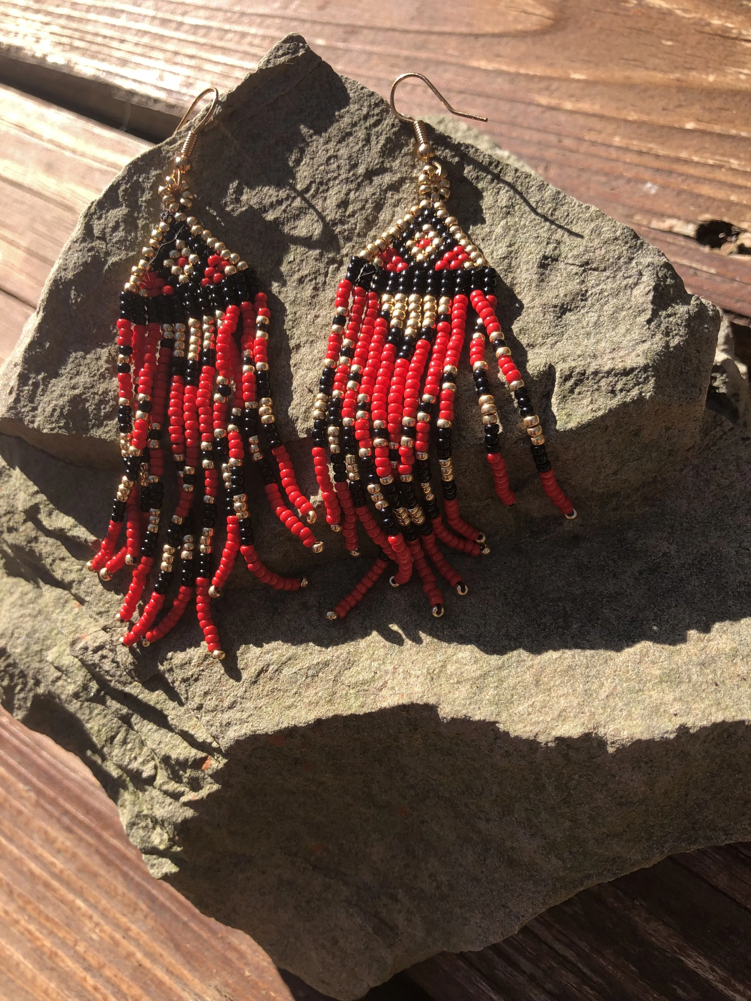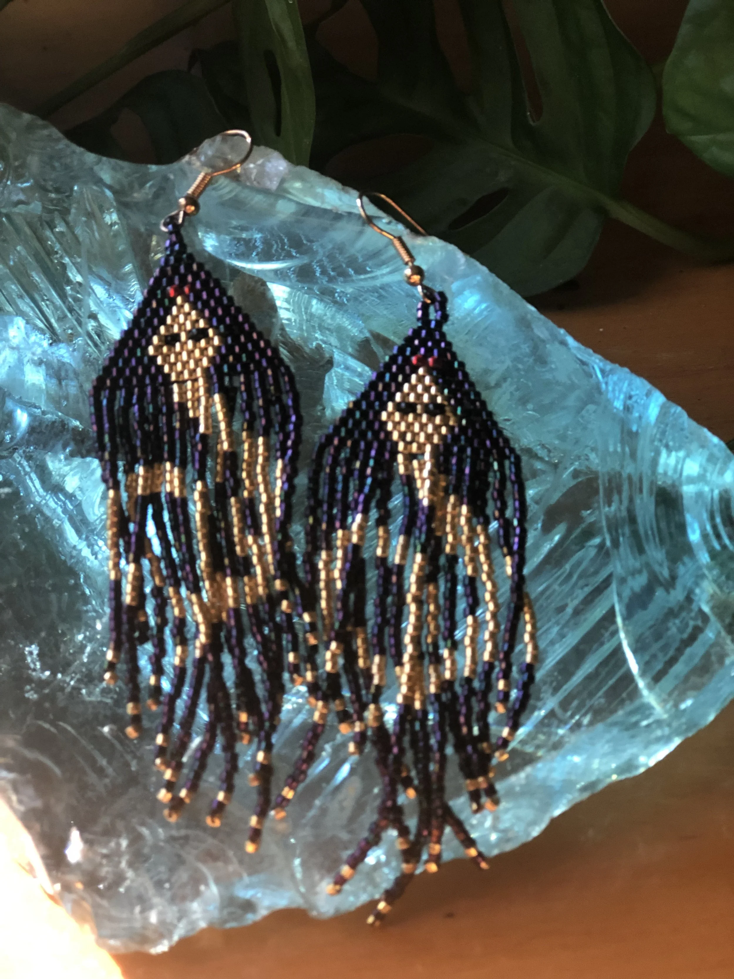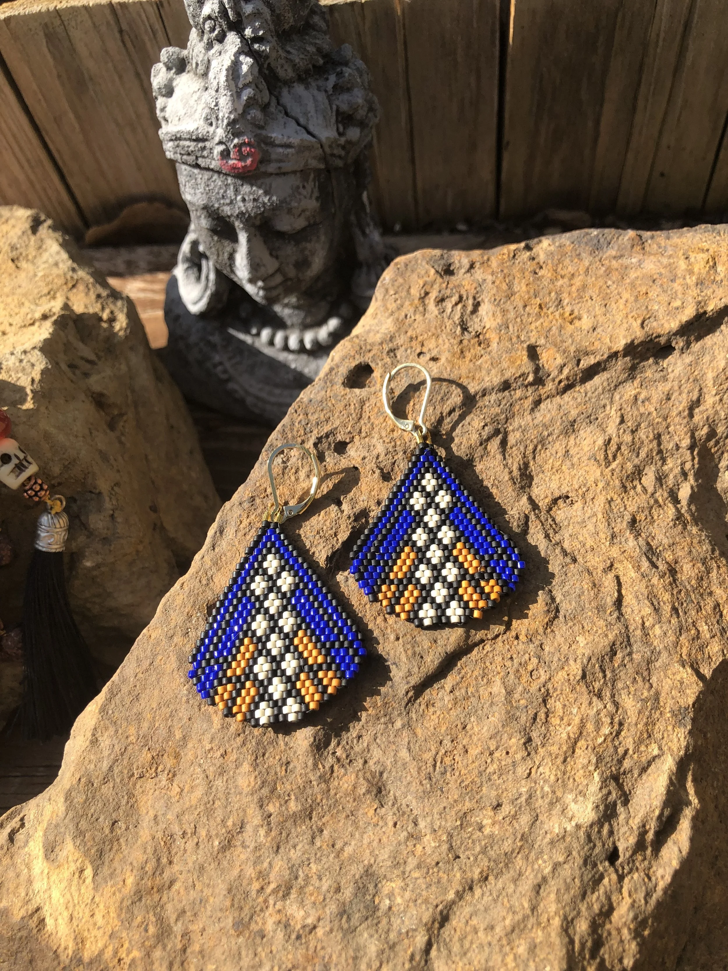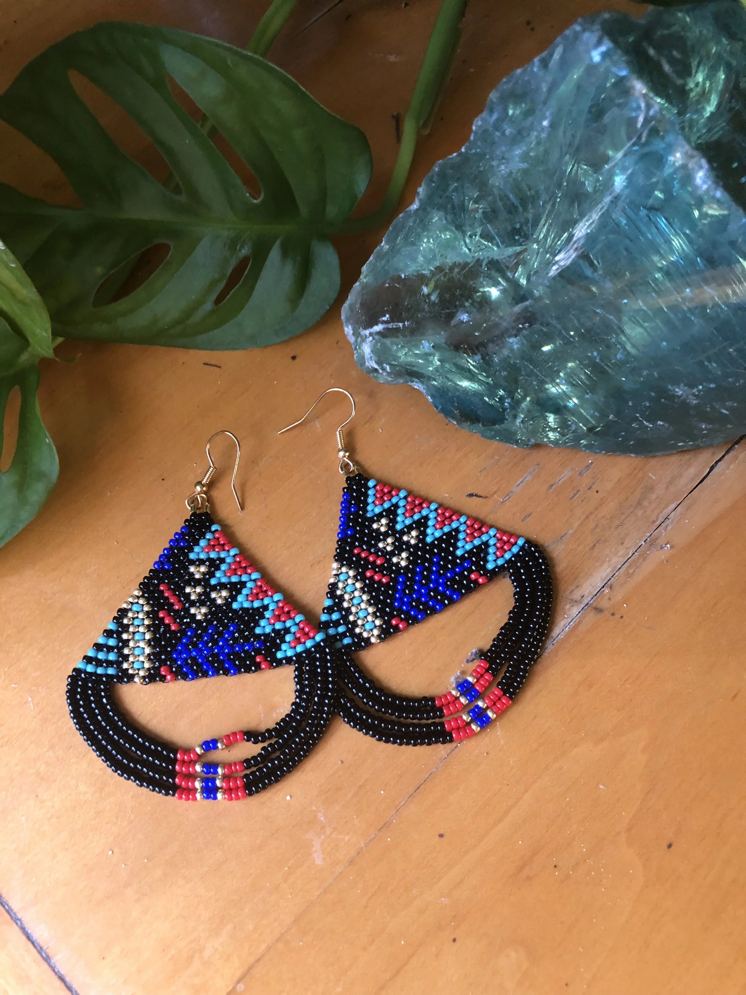 Hand Beaded Jewelry & Treasures Explore creative self expression with beadwork as joyful to wear as to make! More product categories will be added soon. Free shipping within the United States. Categories: All Earrings All | Earrings | Geo BlueEarrings $45.00 Boho Blue Earrings $40.00 Black Magic Earrings $40.00 Sold out Harvest Earrings $40.00 Spark Earrings $35.00 Blue Water Earrings $35.00 Red Tribal Earrings $40.00 Sold out Royal Structure Earrings $40.00 Snake Fringe Earrings $40.00 Harvest Dream Earrings $40.00 Sold out Tribal Fan Earrings $40.00 Sold out Gift Card from $25.00